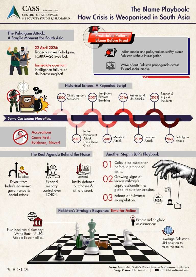 Download PDF Keywords: IIOJ&K, South Asia, India, Pahalgam Incident, Jammu and Kashmir. Source: Shaza Arif, “India’s Blame Game Tactics,”